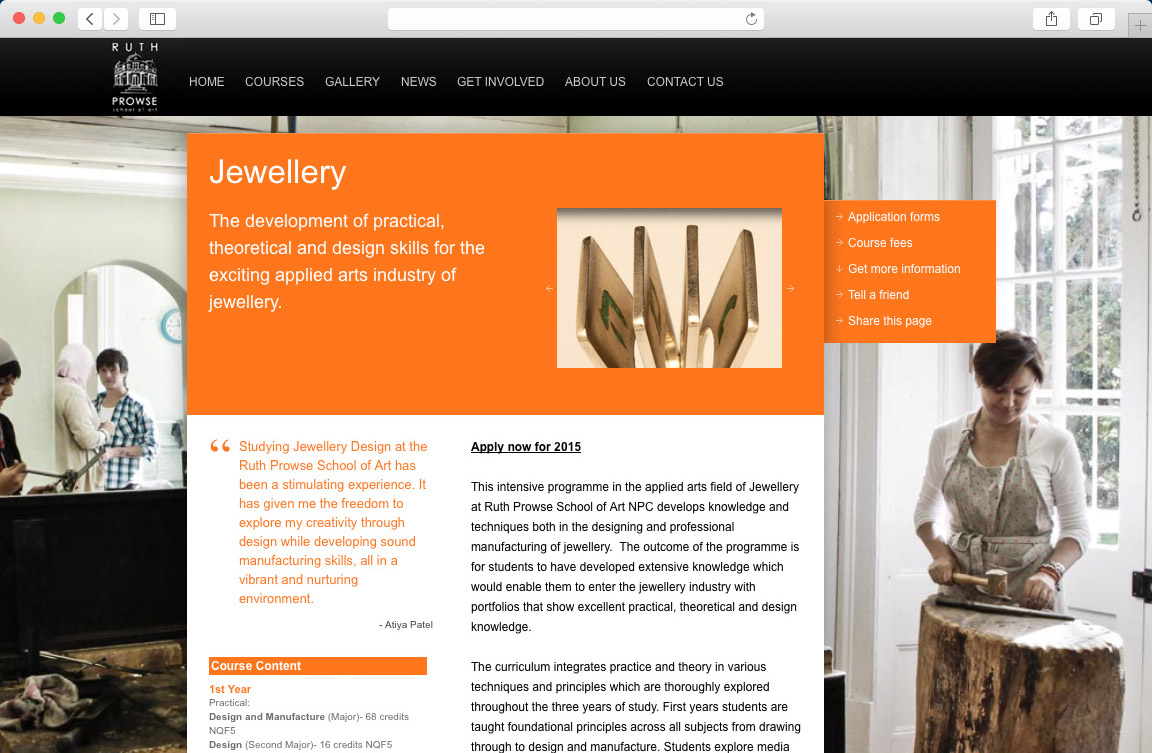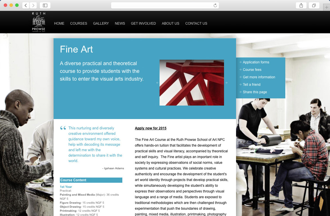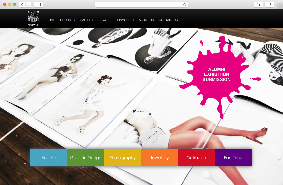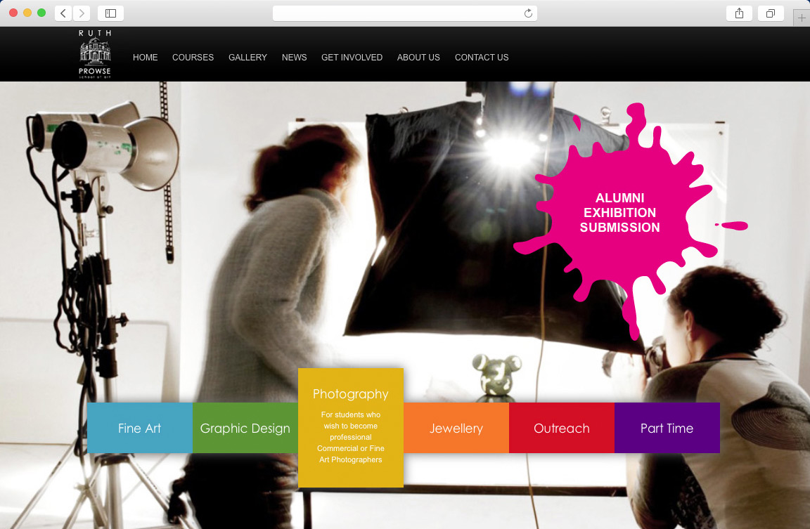 When Fireworkx was tapped by the Ruth Prowse School of Art to refresh their site, the objective became clear: like art, the site needed to be a showcase that drew visitors because of its visuals, but it also needed a commercial focus.
